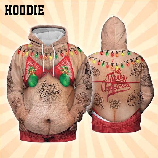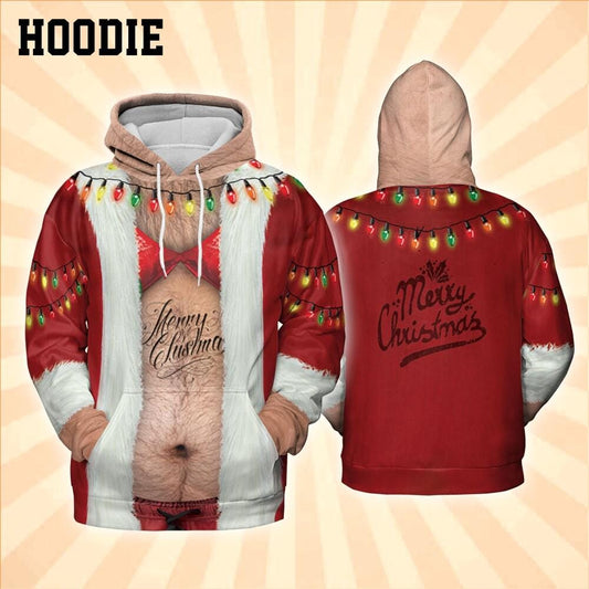 Costume Ugly Santa Hoodie Christmas Ugly Shirt, Hairy Belly