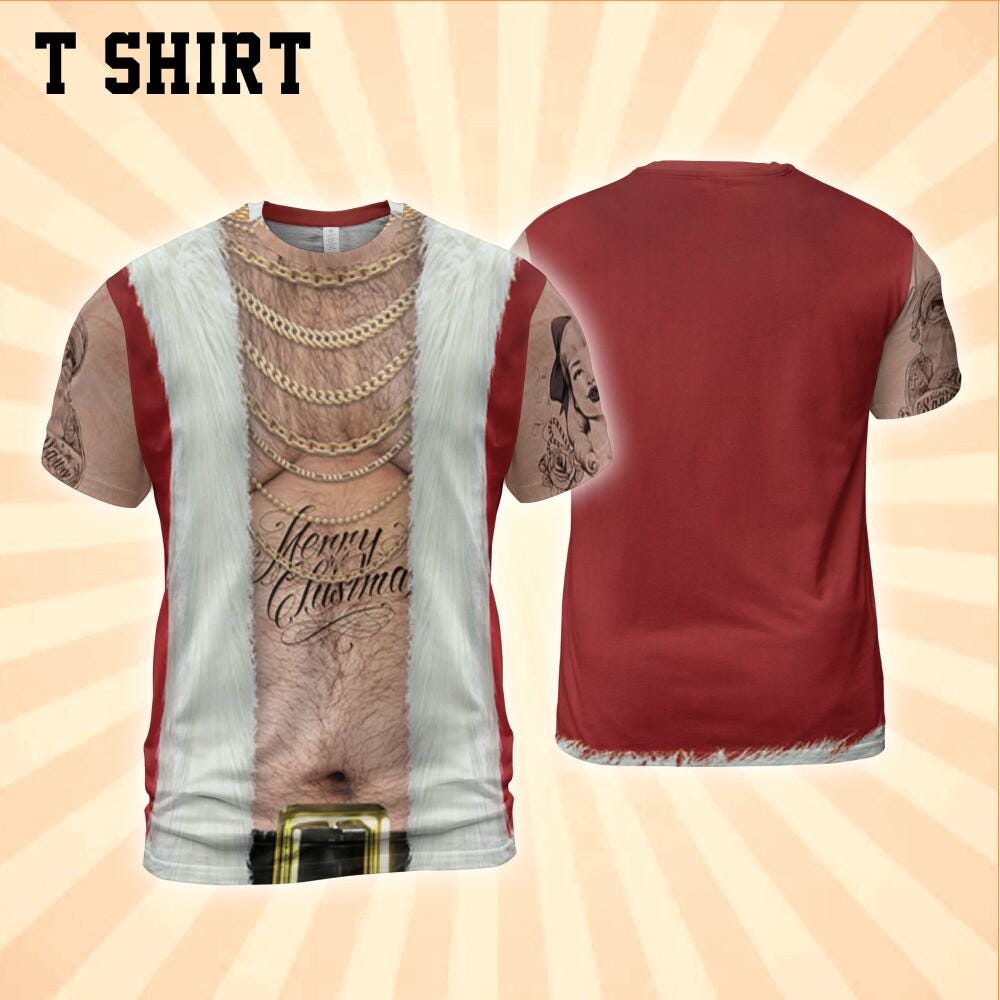 Costume Ugly Santa Hoodie Christmas Ugly Shirt, Hairy Belly