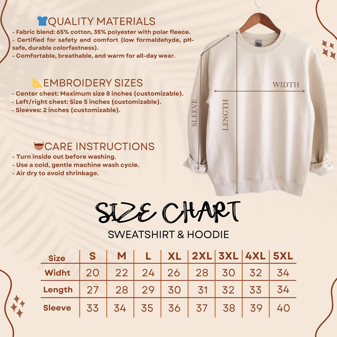 β¨ EMBROIDERY SIZES